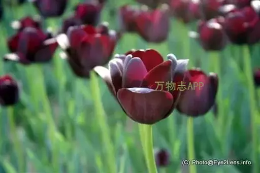 郁金香被爱称为“迷人的酒杯”,其亮丽鲜艳的色彩计人眩目。开黑色花的郁金香被人们认为是稀世奇珍,来之不易。在法国大作家大仲马的《黑郁金香》中,曾这样描述“艳丽得让人睁不开眼, 完美得让人透不过气来”。多年来,经过人工培育出来的美妙无比的郁金香黑色品种,有“绝代佳人”、“黑皇后”、“夜皇后”、“黑金