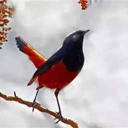 红头咬鹃: 体大,体长约33厘米,体重75-110克。头、颈暗绯红色;背、肩锈褐色。两翅黑色,…
