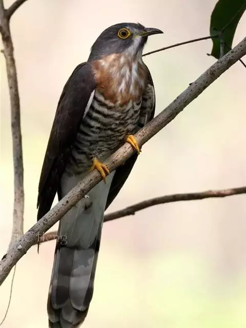 大杜鹃:是普通杜鹃的中国亚种。体长约320毫米,翅长约210毫米。雄鸟上体纯暗灰色;两翅暗褐,翅缘…