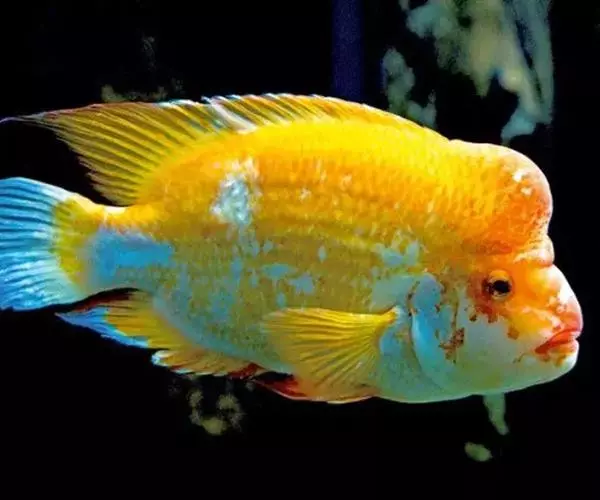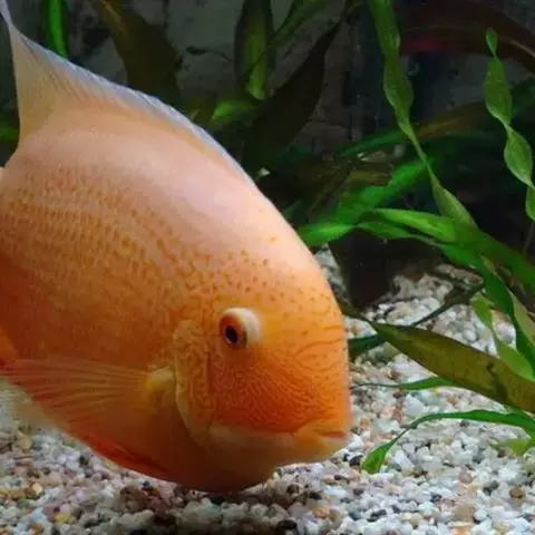 火鹤鱼,热带鱼,鱼学名:Cichlasoma citrinellum 别名寿星头、寿星鱼,原产中美洲的尼加拉瓜、哥斯达黎加等地,属慈鲷科丽体鱼属,体长20-30cm,体形类似金鱼。头大,头顶上方生有一个明显的圆形肉瘤,与众不同。体色粉红,幼鱼体色灰黑,成鱼变成火红色,体色多变,有时体色橘红或黄色。饲养水温22-28℃,饵料有鱼虫、水蚯蚓、小活鱼等。繁殖水温27-29℃,水质是弱酸性软水,亲鱼性成熟6-8个月,雄鱼头顶肉瘤较大,体色鲜红似火,雌鱼体色较淡,每次产卵200-500粒,以平滑岩石或大理石板作产巢。