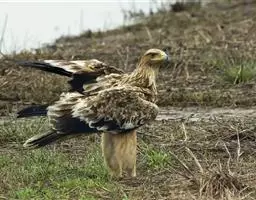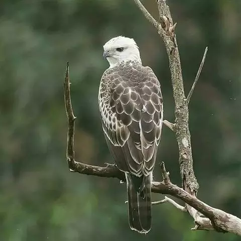 白肩雕:又名御雕,是大型猛禽。体长73-84厘米。体羽黑褐色,头和颈较淡,肩部有明显的白斑,在黑褐…