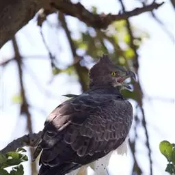 鹰雕,是隼形目鹰科鹰雕属大型猛禽,俗称熊鹰、赫氏角鹰。其上体暗褐色,头后冠羽常竖立起,…