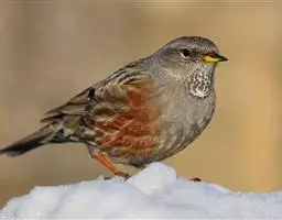棕眉山岩鹨是岩鹨科、岩鹨属小型鸟类,体长13-16厘米。头和头侧黑色,…