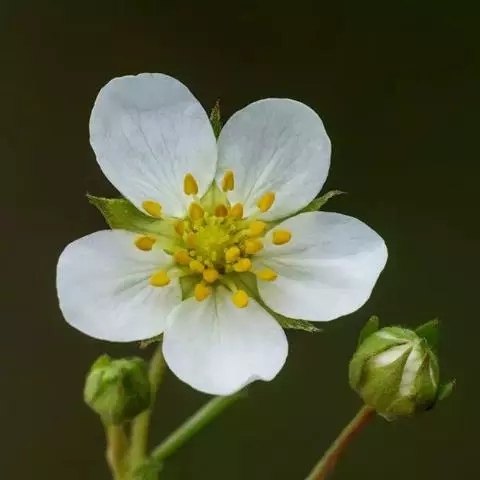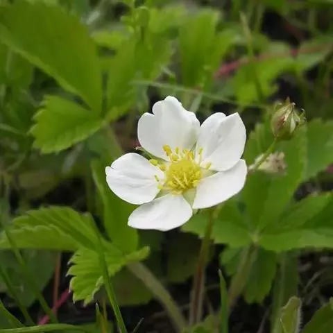 草莓花,别名洋莓,学名Fragaria ananassa Duch.是蔷薇科草莓属植物中最常见的一种,属多年生草本植物。原产美洲,后在法国进行繁殖,是栽培最广泛的草莓品种。八倍体植物,种子发芽期需10-15天。深红色圆形或心脏形浆果体,肉纯白,萼片和苞片展开。草莓花也象征甜蜜。