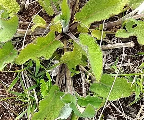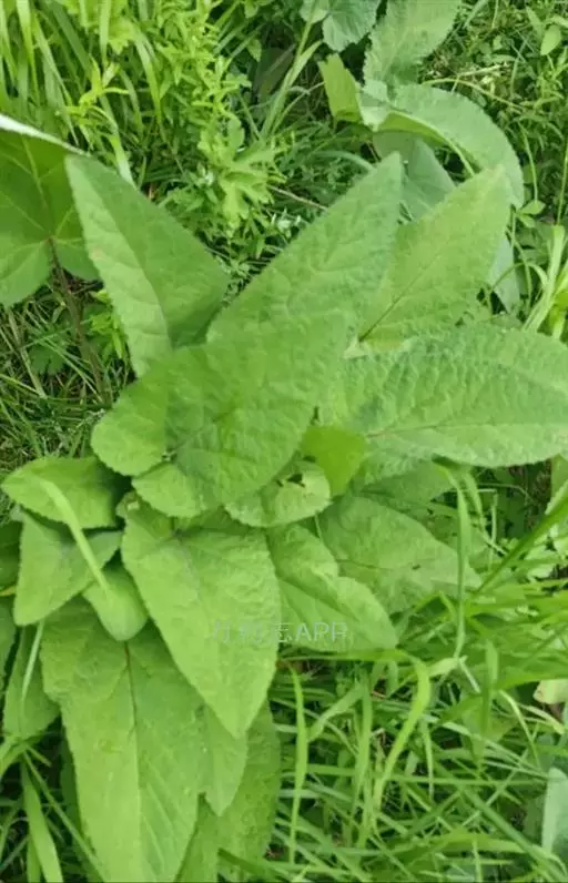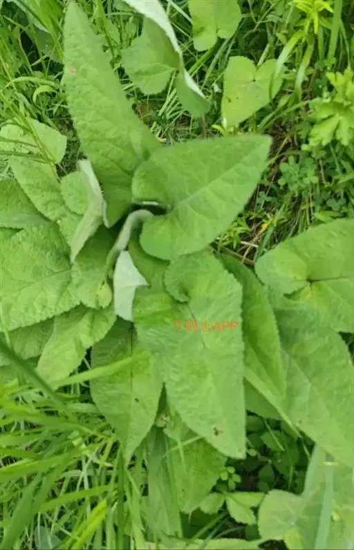 叶有基出叶和茎生叶两种,均具柄,叶片三角状或椭圆状戟形,稀心状卵圆形,有时具圆的侧裂片,长5-11厘米,宽3-7厘米,先端锐尖,基部心形或戟形,边缘具近于整齐的圆齿状牙齿,草质,上面绿色,被微硬毛,下面灰白色,密被灰白绒毛;根出叶的叶柄长6-21厘米,茎生叶的叶柄长1-4厘米,密被微柔毛。
