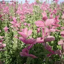 彩苞鼠尾草为唇形科、鼠尾草属一年生草本,株型直立,叶对生长椭圆形,色灰绿,叶表有凹凸状织纹,有香味,…