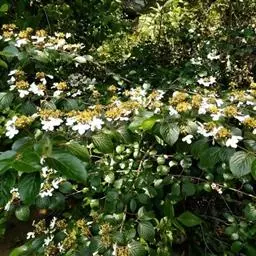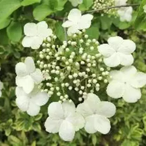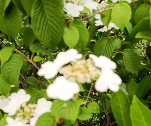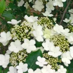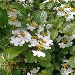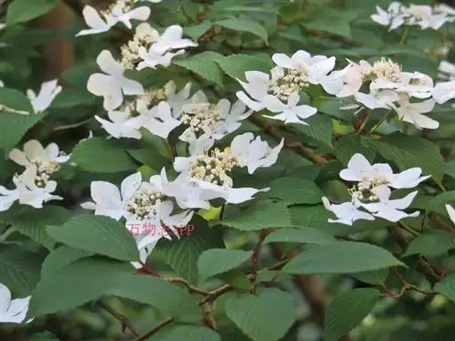 蝴蝶戏珠花(学名:Viburnum plicatum Thunb. var. tomentosum (Thunb.) Miq.)是忍冬科荚蒾属植物。落叶灌木,高达3米;当年小枝浅黄褐色。叶较狭,宽卵形或矩圆状卵形,有时椭圆状倒卵形。花序直径4-10厘米,外围有4-6朵白色、木型的不孕花。果实先红色后变黑色,宽卵圆形或倒卵圆形;核扁,两端钝形。花期4-5月,果熟期8-9月。