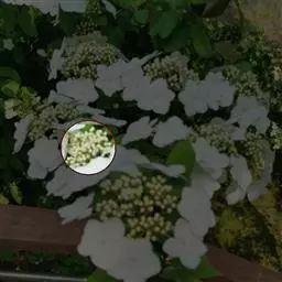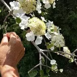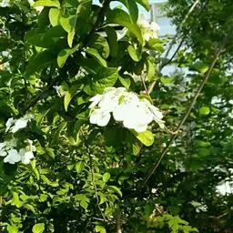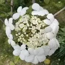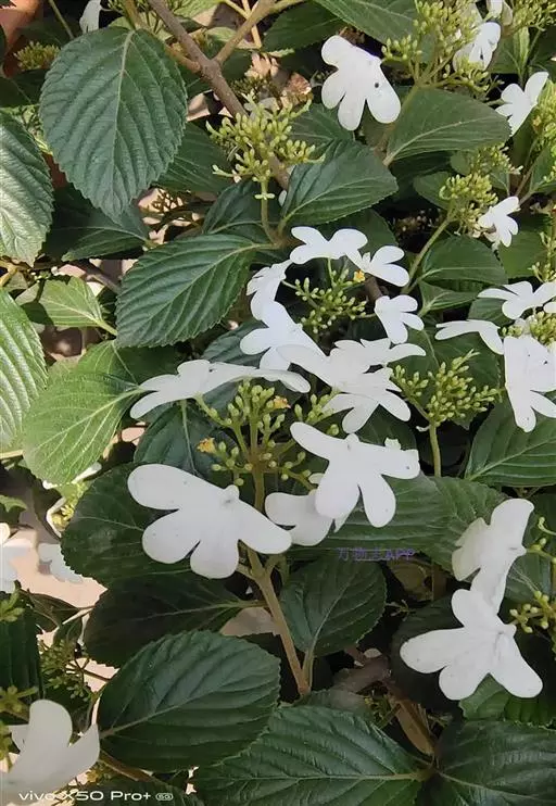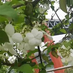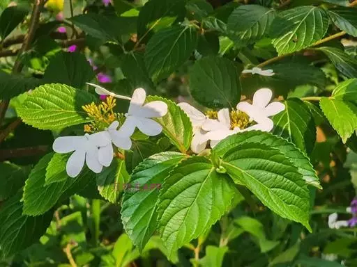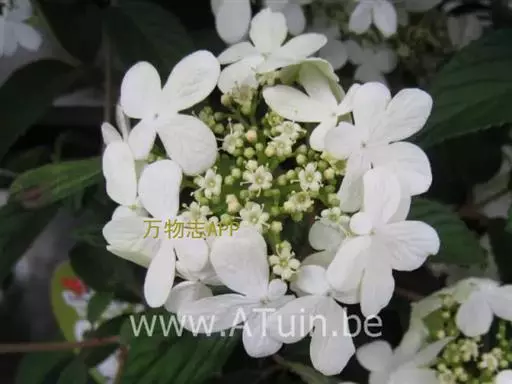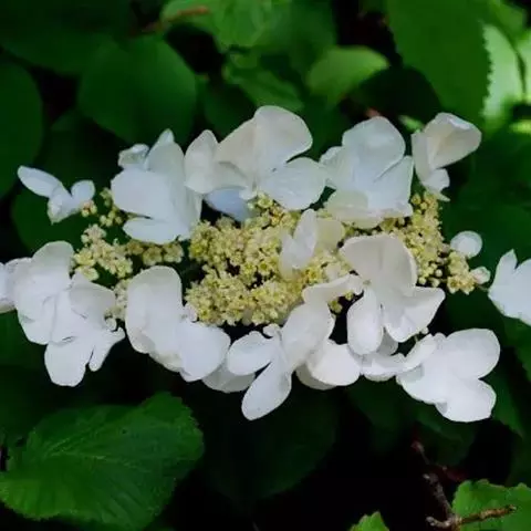 蝴蝶戏珠花花大如盘六寸围,沃土丛生胜浇肥;金黄银白花去后,鲜果累累色彩绯;蝴蝶戏珠花花大如盘,真花如珠,装饰花似粉蝶,远远望去,好似群蝶戏珠,惟妙惟肖,栩栩如生,故而获得“蝴蝶戏珠花”的美名。