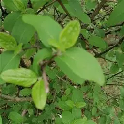 落叶灌木,高达3米;当年小枝浅黄褐色,四角状,被由黄褐色簇状毛组成的绒毛,二年生小枝灰褐色或灰黑色,稍具棱角或否,散生圆形皮孔,老枝圆筒形,近水平状开展。冬芽有1对披针状三角形鳞片。叶较狭,宽卵形或矩圆状卵形,有时椭圆状倒卵形,两端有时渐尖,下面常带绿白色,侧脉10-17对。