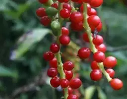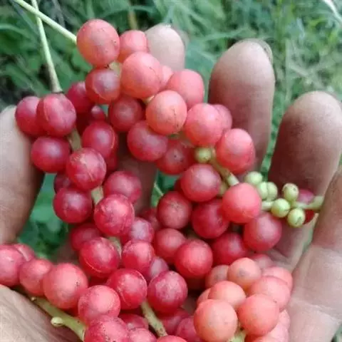 聚合果托长6-15厘米,直径约5毫米;聚合果柄长约3-6厘米;小浆果椭圆形。种子椭圆形,长4-4.5毫米,内种皮灰白色,背具细乳头状凸起或有皱纹,种脐微凹。花期5-6月,果期8-9月。