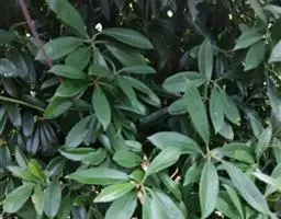 叶纸质,倒披针形、狭椭圆形,长4-11厘米,宽1.5-3.5厘米,先端渐尖,2/3以下渐狭成楔形;边缘具胼胝质齿尖的浅齿或仅具齿尖,近全缘,上面深绿色,下面灰绿带苍白色;侧脉每边5-7条;叶柄长1-2.5厘米,红色,具叶下延的狭膜翅。
