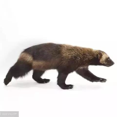 貂熊是现存最大的陆生鼬科动物,貂熊在身体外形上介于貂与熊之间,身体和四肢粗壮像熊,但有一条长尾则象貂。身体不大, 体型粗壮,连头带尾长约80~100厘米,尾长18厘米左右,体重达8~25千克。毛被棕褐色,体侧向后沿臀周有一淡黄色半环状宽带纹,状似“月牙”,故有“月熊”之称; 由于两肋至后腿根部的毛延长,长度可达12厘米,如同围着一圈长长的“毛裙子”,加上它蓬松的尾毛,在密林中自由跳窜和自高处跳下时烈烈飘动,宛如飞翔,故貂熊又被称为“飞熊”。 尾巴粗大,尾毛黑褐色,呈丛穗状下垂。头大耳小,背部弯曲,四肢短健,跖行性,爪长而直,不能伸缩。