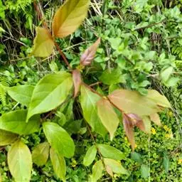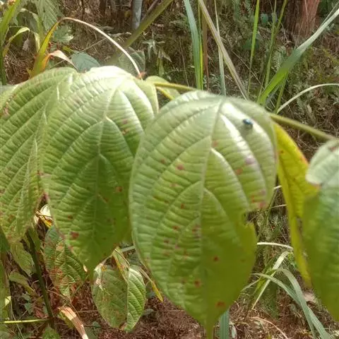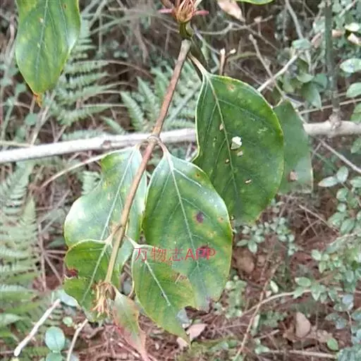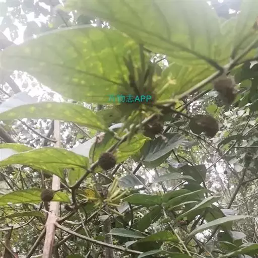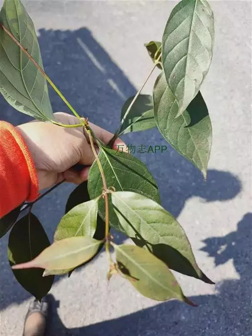 叶纸质,椭圆形或椭圆状长圆形,长5-12cm,宽3-7cm,两面均无毛,干时褐色或红褐色,下面有时有白粉,顶端短尖或骤尖,基部楔形至截形,有时稍下延;侧脉4-8对,脉腋窝陷有粘液毛;叶柄长5-15mm,无毛;托叶狭三角形,深2裂达全长2/3,外面无毛,里面无毛或基部具粘液毛,裂片线形至三角状披针形。