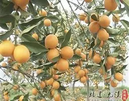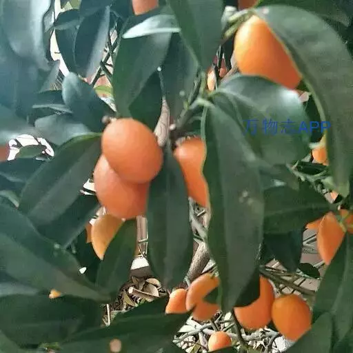 金柑(学名:Fortunella japonica (Thunb.) Swingle),别名金橘 ,常绿灌木,树高2-5米,枝有刺。小叶卵状椭圆形或长圆状披针形,长4-8厘米,宽1.5-3.5厘米,顶端钝或短尖,基部宽楔形;叶柄长6-10毫米,稀较长,翼叶狭至明显。花单朵或2-3朵簇生 长稀超过6毫米;花萼裂片5或4片;花瓣长6-8毫米,花丝不同程度合生成数束,间有个别离生,子房圆球形,4-6室,花柱约与子房等长。果圆球形,横径1.5-2.5厘米,果皮橙黄至橙红色,厚1.5-2毫米,味甜,油胞平坦或稍凸起,果肉酸或略甜;种子2-5粒,子叶及胚均绿色,单胚。花期4-5月,果期11-翌年2月。在人工栽培情况下,一年开花三次,第一次在3-4月间,最后一次在8-9月间。