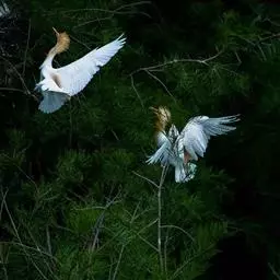 雪鹭:全身洁白的羽毛,颈背有丝状蓑羽。有一双亭亭玉立黄色长腿和一个黑色的鸟喙。在繁殖季节,鼻孔和眼…