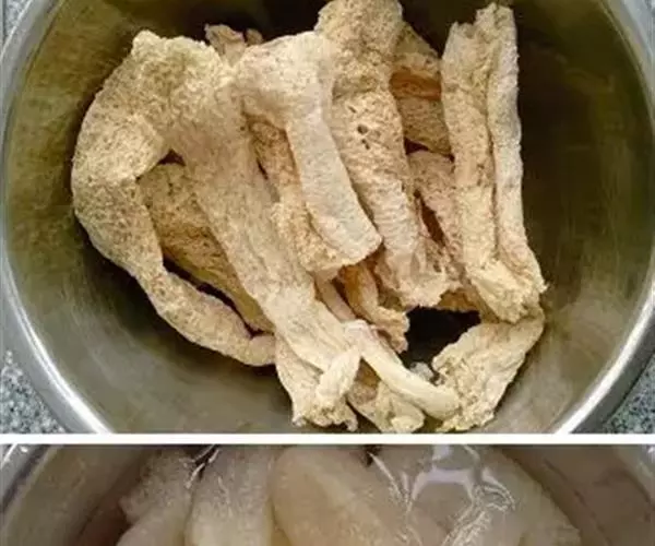 竹荪(干)做法指导:干品烹制前应先用淡盐水泡发,并剪去菌盖头(封闭的一端),否则会有怪味。