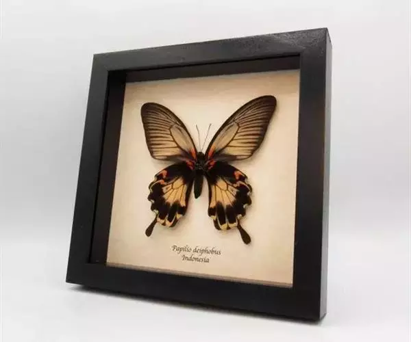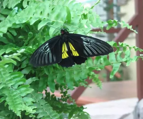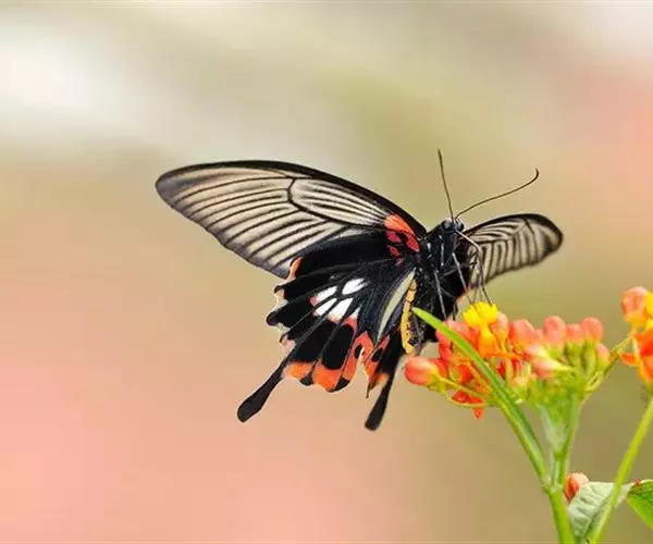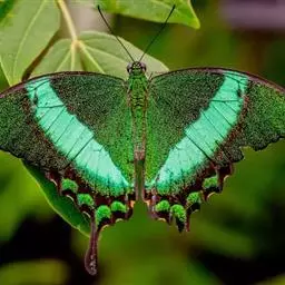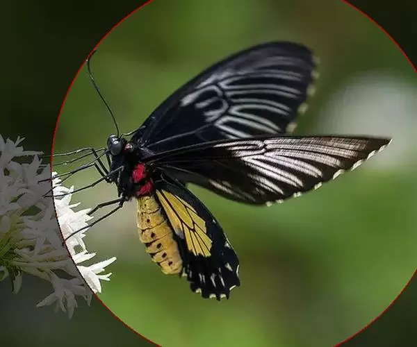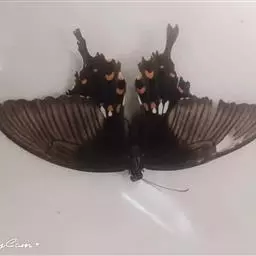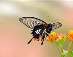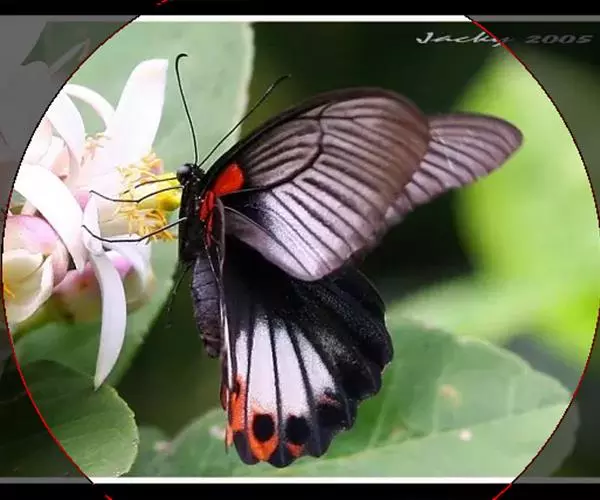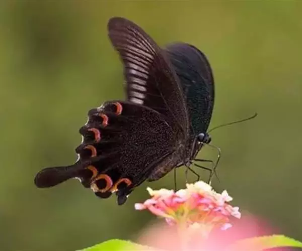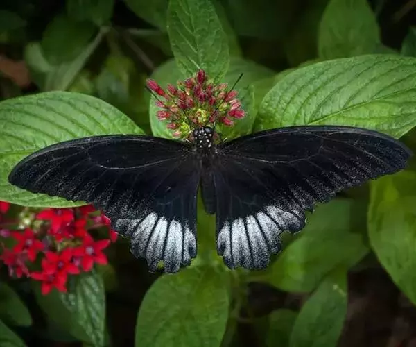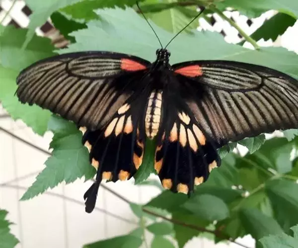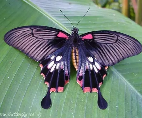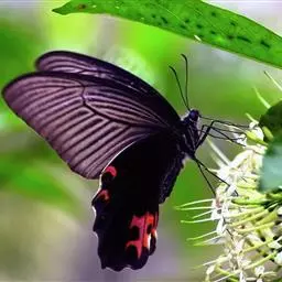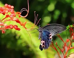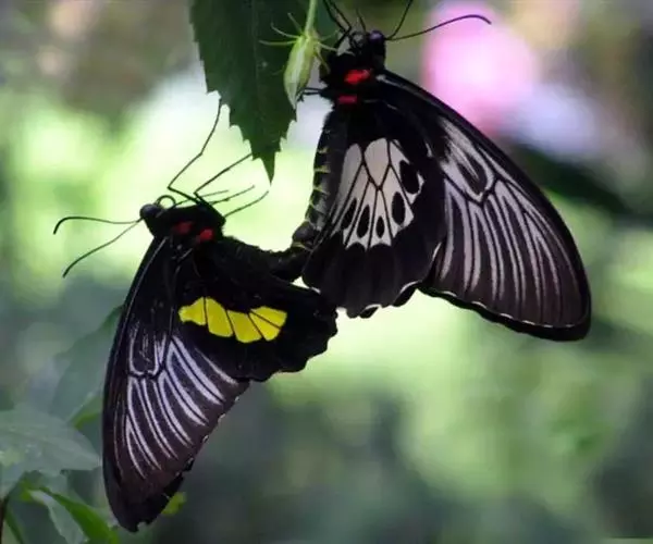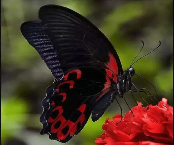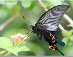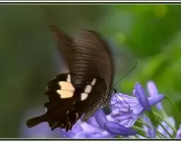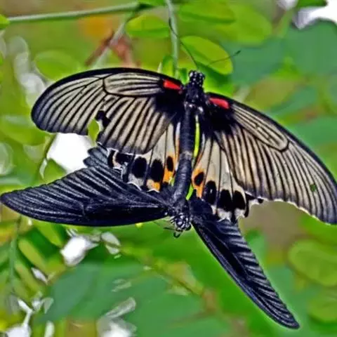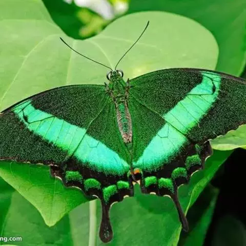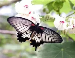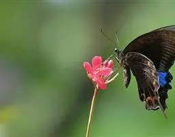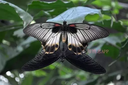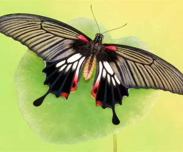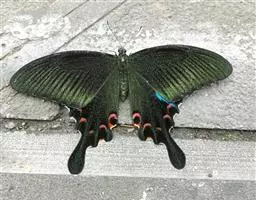 美凤蝶(Papiliomemnon)又名多型凤蝶,是一种雌雄异型的蝴蝶。“memnon”为希腊神话中的埃塞俄比亚国王,足以显示出这种蝴蝶的雍容华贵。该蝶展翅有105—130毫米,雄性翅正面蓝黑色,呈天鹅绒状,前翅反面基部有1个大红斑,该斑有时在前翅正面亦会现。