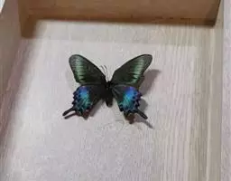 天堂凤蝶翅展可达105mm。前、后翅自基角至后缘约1/2~2/3端为纯净的宝蓝色,后角至后缘1/3…