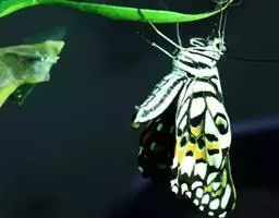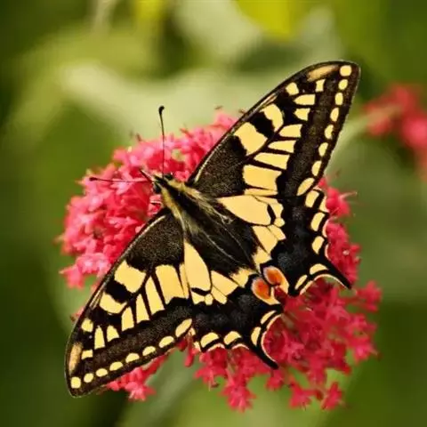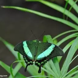 美凤蝶 美凤蝶卵期4-6天,幼虫期21-31天,蛹期12-14天。成虫将卵单产于寄主植物的嫩枝上或叶背面,老熟幼虫在寄主植物的细枝或附近其它植物上化蛹。