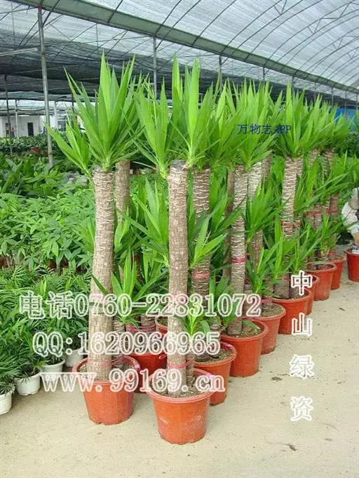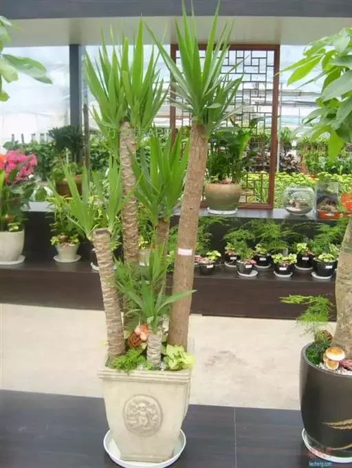 象脚丝兰株形规整,茎干粗壮,叶片坚挺翠绿,极富阳刚、正直之气质。它适应性强,生命力旺盛,栽培管理简单,同时是一种对多种有害气体(如CO2、HF、Cl2、NH3等)具有较强的吸收能力的植物,是室内外绿化装饰的理想材料。作中小盆栽,布置会议室、大厅、走廊过道等处,可营造庄重、严肃的气氛;盆栽的幼小植株放于书架、办公桌上,也极受欢迎。