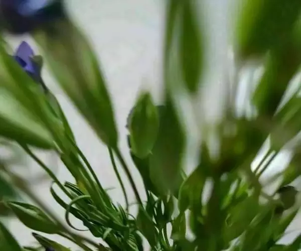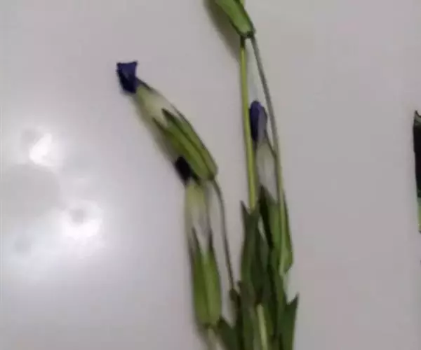 扁蕾根细长圆锥形,稍有分枝,长短不一,直径约1.5mm,表面淡黄色。茎具4纵棱,有分枝,长短不一,直径约2mm,表面黄绿色,光滑无毛,节部膨大;质脆,易折断,断面中空。叶对生,皱缩破碎,完整叶片呈条形,先端渐尖,全缘,基部2对生叶几相连,表面绿色或暗绿色;质脆,易碎。花单生于枝端,多断落,花萼钟状,具4棱,4裂,内对裂片披针形,先端尾尖,外对裂片条状披针形,较内裂片长,黄绿色,花冠钟形,淡黄色、黄绿色或淡蓝色。气微,味微苦。