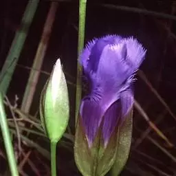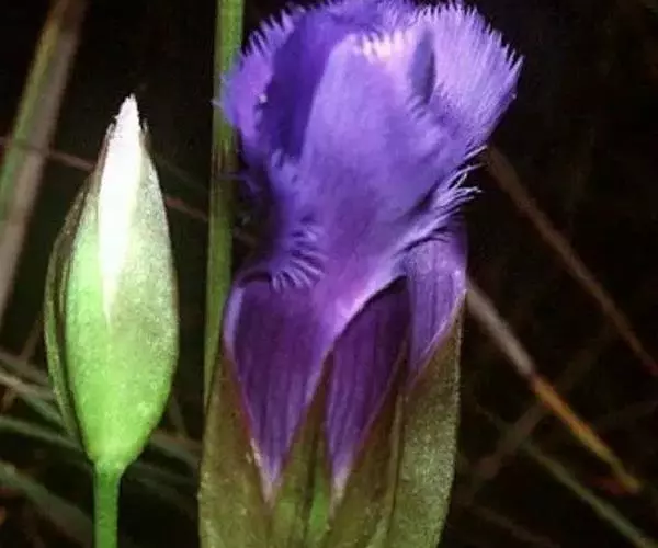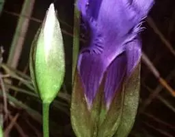 扁蕾,拉丁文名:Gentianopsis barbata (Froel.) Ma. 龙胆科、扁蕾属一年生或二年生草本,茎单生,直立,近圆柱形,下部单一,上部有分枝,条棱明显,有时带紫色。基生叶多对,常早落,匙形或线状倒披针形,花单生茎或分枝顶端;花梗直立,近圆柱形,有明显的条棱,花冠筒状漏斗形,筒部黄白色,檐部蓝色或淡蓝色,蒴果具短柄,与花冠等长;种子褐色,矩圆形,表面有密的指状突起。花果期7-9月。分布于中国西南、西北、华北、东北等地区及湖北西部。