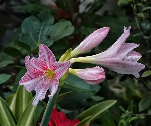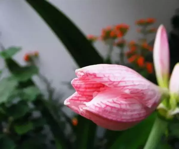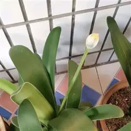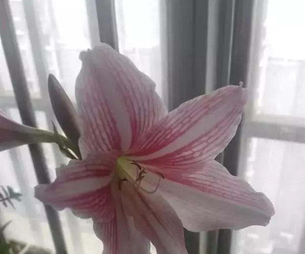 5. 养护:为了使花朵开的更好,可在花葶露头之后每周添加一次含磷钾高的营养液。当花葶长到约3cm时,将环境温度提高至25度。开花期把植株放在约10度的凉爽之处,这样做可是花色更鲜艳,花旗更长。花后待春季暖时,把水养白肋朱顶红栽种到地下养护,促使球茎增大和产生新种球。球茎在8~13度条件下储藏4~6周使其休眠。冬季再重新水养,春季时又能开花。