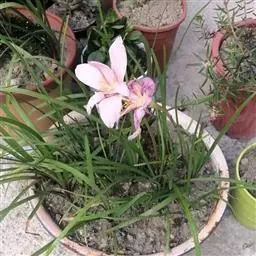 一是用适当容积的花盆栽种是促使它秋冬季开花的重要一环。何为适当容积的花盆栽种,这让人听起来似乎不好懂,其实它只是与大花盆相比较而言,一定要确切点讲的话,一般在18~20厘米左右内口径的花盆栽种二株球径在4厘米以上的白肋朱顶红就被视为适当。在这种花盆内栽种一般促花明显,其道理是显而易见的,让白肋朱顶红的根部局限在一定容积花盆内。难以使它有充足的伸展空间,抑制营养生长,不使它继续萌发新叶,迫使它向生殖生长转化。其实4厘米以上的球径其内部花苞已形成,只不过何时抽葶开花的时间问题,这样外因一促,它就提前抽葶开花了。