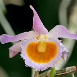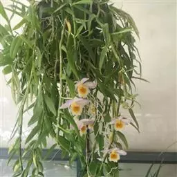 重唇石斛:茎下垂,圆柱形或有时从基部上方逐渐变粗,具少数至多数节。叶薄革质,狭长圆形或长圆状披针形。…