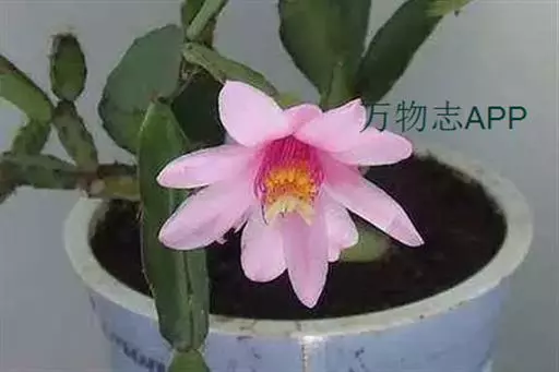 为附生植物,株高25厘米至30厘米,植株多分枝,呈丛状生长,茎节肥厚多肉,半直立,长2厘米至4厘米,形态富于就化,或具3棱至5棱;或仅2棱,呈扁平状;或呈不规则棱角状,一般规律是下部茎节棱多,接近状,上部茎节扁平,类似蟹爪兰。花顶生,粉红色至玫瑰红色,花茎3厘米至4厘米,呈辐射对称状,具清香。