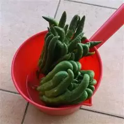 2、仙人指茎节(叶片)为扁平倒卵状,叶边缘无尖齿,呈浅波状。
