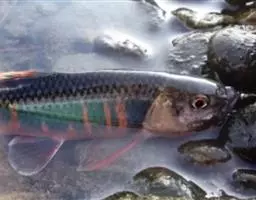 全裸裸重唇鱼,Gymnodiptychus integrigymnatus ,鲤科裸重唇鱼属的一种…