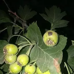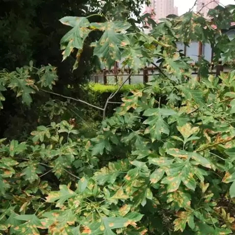 对白粉病发病较重的山楂园在发芽前喷1次5瘦石硫合剂,花蕾期、6月份各喷1次600倍50%可湿性多菌灵或50%可湿性托布津。