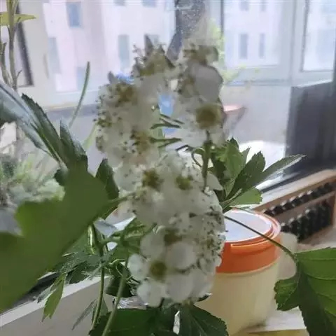 伞房花序具多花,直径4-6厘米,总花梗和花梗均被柔毛,花后脱落,减少,花梗长4-7毫米;苞片膜质,线状披针形,长约6-8毫米,先端渐尖,边缘具腺齿,早落;花直径约1.5厘米;萼筒钟状,长4-5毫米,外面密被灰白色柔毛;萼片三角卵形至披针形,先端渐尖,全缘,约与萼筒等长,内外两面均无毛,或在内面顶端有髯毛;花瓣倒卵形或近圆形,长7-8毫米,宽5-6毫米,白色;雄蕊20,短于花瓣,花药粉红色;花柱3-5,基部被柔毛,柱头头状。