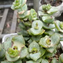 红数珠是景天科青锁龙属植物,叶片对生,叶片长圆型,叶片肥厚。叶片表面有不规则凸起的白色颗粒,…