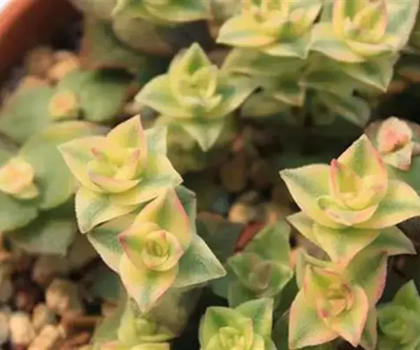粉红十字星锦(Crassula pellucida variegata)是十字星锦的一个品种又名星乙女锦 ,属于景天科青锁龙属,因叶子有粉色环绕而得名,原产地南非开普敦地区,为多年生肉质草本植物,植株丛生,有分枝,茎肉质,时间养久了茎会逐渐半木质化。