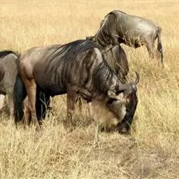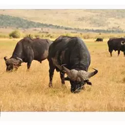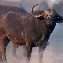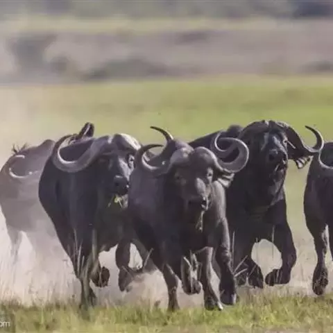 非洲野水牛(学名:Syncerus caffer):共有5个亚种。头体长2.1-3.4米,身高1-1.7米,体重300-900千克。胸膛宽阔,四肢粗壮,头大角长,雄性的角从头部向外和向下扩散,在一些雄性中,角通过覆盖头部的大盾连接。头顶的柔软的毛发附着在大而下垂的耳朵上。身体通常覆盖着稀疏的毛发,通常从棕色到黑色。长尾巴,尾尖处有毛发流苏。雄性个体大于雌性,角也更大更长更厚。而热带草原的种群的体型可以达到森林栖息地的物种的两倍。