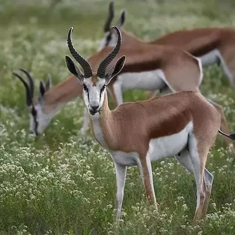 阿拉伯沙瞪羚:是偶蹄目、牛科、瞪羚属的食草动物。头尾长97厘米,身高约55-60厘米。…