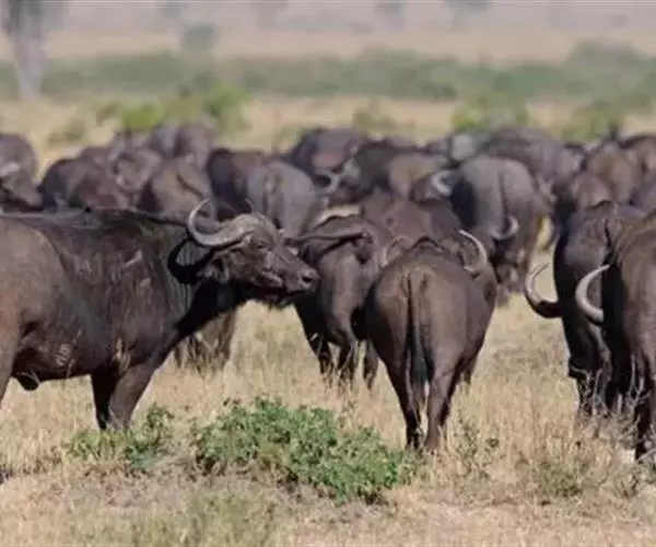 该物种也容易受到干旱的影响,这种情况在20世纪90年代造成了一些牛群人口的大幅度下降,炭疽、牛瘟及牛结核病,都是影响非洲野水牛种群数量的重要因素。国家公园外的野水牛与人类接触,它们在有的地方会破坏围栏,突袭农作物,也将牛疾病传播给人类养殖的牲畜,导致被牧场主猎杀迫害。