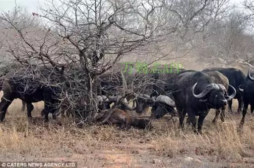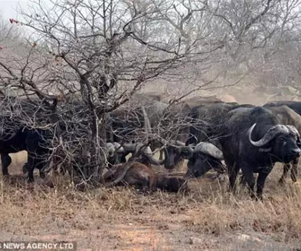 非洲野水牛群体中,雌性之间的合作是强大的,如果有成员被狮子等食肉动物袭击,那么其余的群体将对其咆哮的求救呼喊作出反应,并且匆忙地进行防御。一群野水牛很容易驱走整个狮群,以保护整个畜群成员的安全。森林野水牛生活的族群大小并不重要,因为它们栖息在一个不适合食肉动物(如狮子)的栖息地中,如果需要的话,森林野水牛可以很容易地进入隐蔽处。