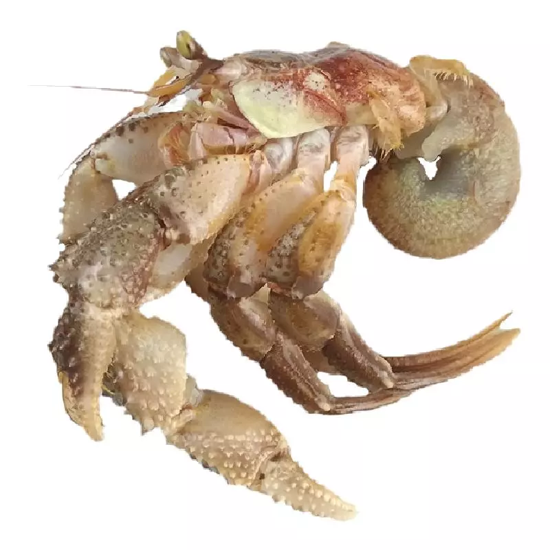 幼体在繁殖初期与其它陆寄居蟹相似,从大眼幼体成长到幼蟹时也身背螺壳,将腹部保护在其中,直到腹部发育甲壳硬化之后才脱离螺壳。