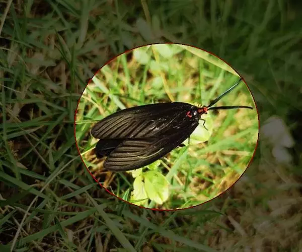【外观特征】中小型,头小,复眼黑色,头背方形;红色,胸黑色,足黑色。触角梳齿状,柄亮蓝色,毛黑色,末端扇形。翅黑色,具金属蓝黑色光泽,双翅不为半透明,前翅背面中后方有1条宽型的斜向白色带,后翅色浅。 【生活习性】白天可见,栖息低矮的树林或草丛中,幼虫在灌木丛中取食叶片,成虫出现于4~9月。 【分布区域】安徽、台湾。