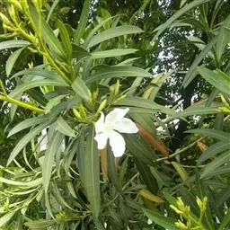 白花夹竹桃是夹竹桃科、夹竹桃属植物夹竹桃的栽培品种。常绿直立大灌木,枝条灰绿色;嫩枝条具稜,被微毛,…