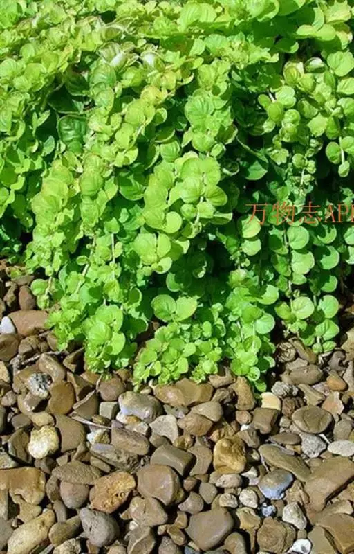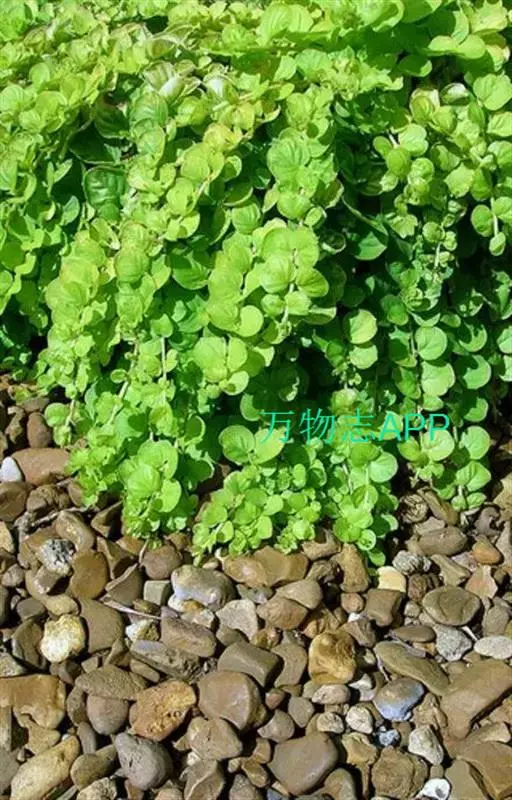 金叶过路黄(Lysimachia nummularia ‘Aurea’)是报春花科、珍珠菜属植物。多年生蔓性草本,常绿,株高约5厘米,枝条匍匐生长,可达60厘米,单叶对生,圆形,基部心形长约2厘米,早春至秋季金黄色,冬季霜后略带暗红色;夏季6-7月开花,单花,黄色尖端向上翻成杯形,亮黄色,花径约2厘米,因花色与叶色相近,常不大受人注意。喜光耐荫,耐水湿,耐寒性强,具有清热解毒,散瘀消肿,利湿退黄之功效。原产于欧洲、美国东部等地,现在中国广泛栽培。