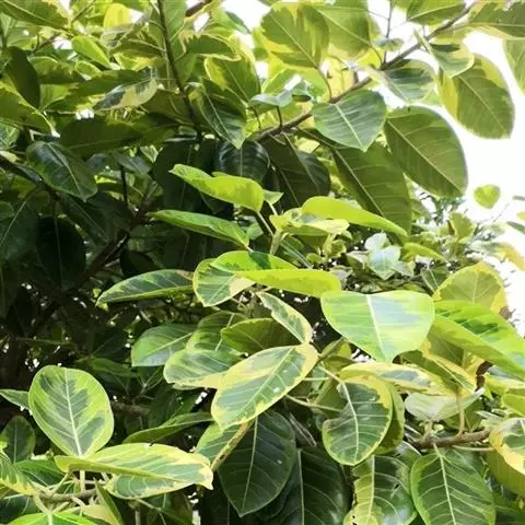 三角榕为常绿乔木或小乔木。叶片近三角形,薄肉质,全缘,长4~6厘米,宽3~5厘米,浓绿色。