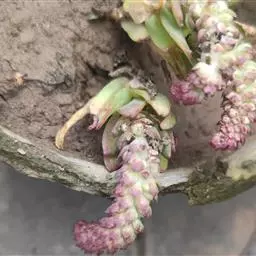 日常育苗须控制水分,宜干不宜湿;施肥以钾肥为主,如磷酸二氢钾、草木灰等。还可喷洒矮壮素促使矮化。培植的头两年一般只控制枝叶,着重相处剪;进入第三年可换一次盆土,并开始造型绑扎;以后逐年提根和减土,直到无土培植。