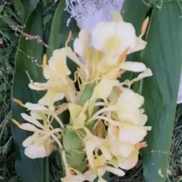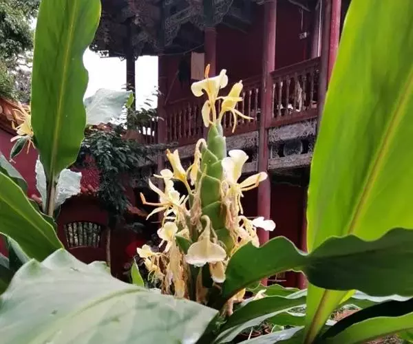 黄姜花被信奉佛教的人们纳入到了“五树六花”的行列,这绝非偶然,由于佛教对香气十分重视,常常用它来比喻修行的德性,供奉佛祖和菩萨时也必须用香,所以气味馥郁的黄姜花能跻身五树六花之列也就顺理成章了。另外,黄姜花采摘下来后直至夜晚都不会凋谢,因此成为人们喜用的宗教花饰材料和必备的寺庙参拜供品。此外,黄姜花的根部提取出的染料还可以染制袈裟。黄姜花的行、味、色均于佛有缘,故称之为人间佛花毫不为过。