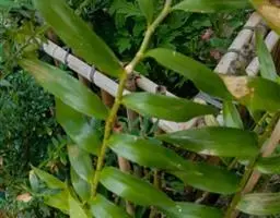 陆生或附生草本,具块状根茎。 茎高1.5-2米;叶片长圆状披针形或披针形,长25-45厘米,宽5-8.5厘米,顶端渐尖,并具尾尖,基部渐狭,两面均无毛;无柄;叶舌膜质,披针形,长2-5厘米。