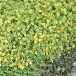 金叶佛甲草为景天科植物,为佛甲草一变种。耐旱性极强,植株低矮,匍匐地面生长,高10至20厘米,花期多在5至6月,开金黄色花。叶片金黄色,枝叶生长茂盛,覆盖地面能力强,速度快,其繁殖特别容易。