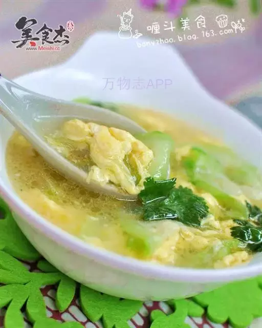 4.最后在临出锅的时候,可以根据自己喜欢放点绿色蔬菜,最后就是一定不要忘了,在锅中飞个鸡蛋花,飞鸡蛋花的时候不要马上去搅拌,一定要等鸡蛋有型了,那样好可以成片;